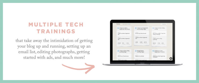 The technical side of blogging can be so intimidating, so Framework includes 20 tech tutorials to walk you through it step-by-step, from choosing a domain name and hosting to installing plugins, putting an email list in place, editing photos, and more. These trainings will give you a solid technical footing so you don’t have to waste valuable time fixing issues that could have been avoided.